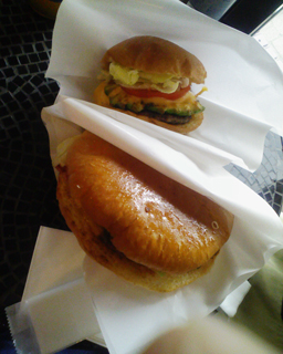 ま、写真見てくれ。上がレギュラー。レギュラーは普通のバーガーと同じくらいだったよ。