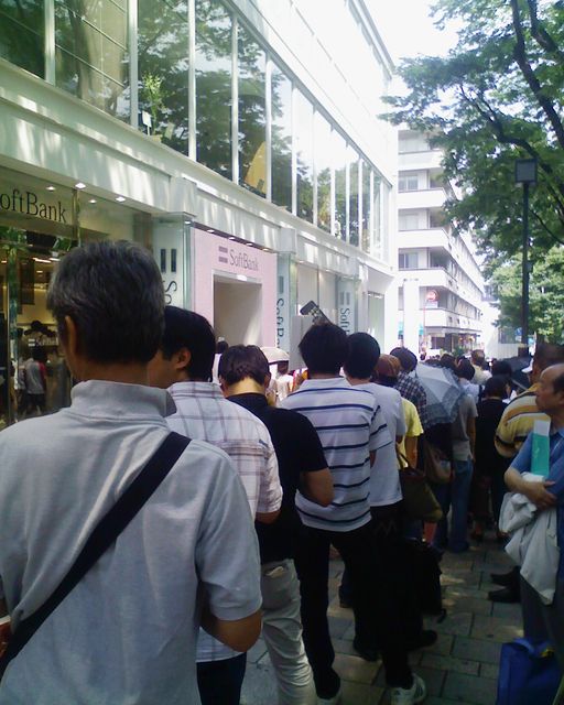 PM 0:00ごろ、ひたすら並ぶ。SOFTBANK表参道店の看板も見えず